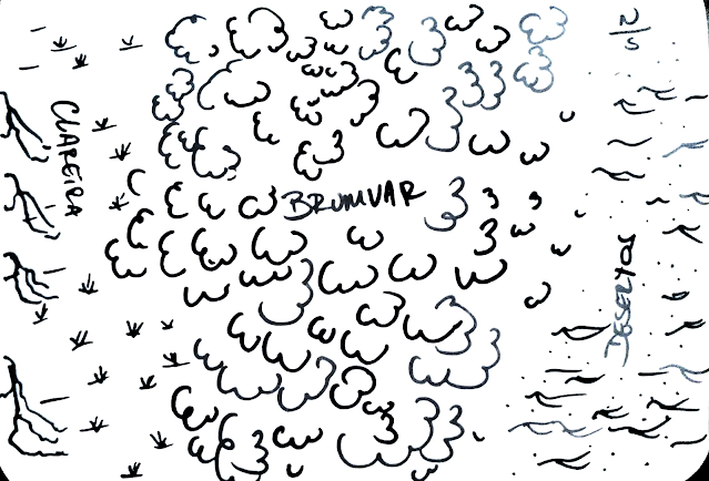 Nota: antes do primeiro dia, queria só contextualizar a realidade dessa narrativa. M está atravessando uma floresta chamada Brumvar. Ela já fez parte de outro jogo meu "What Hides in the Dark" e eu achei interessante trazer para quem saber uma experiência contribuir para a outra no futuro. Brumvar é uma floresta misteriosa no continente de Mour, uma terra fantástica. Essa floresta fica entre uma longa clareira e montanhas nevadas, enquanto do outro lado há um deserto seguido do oceano. Há povos que habitam ela, mas também há povos do deserto que se aventuram nela. Nossa personagem não está lá por acaso, ela está indo para o sul, nem para a clareira e nem para o deserto, mas sentido a costa do continente. Por agora, é isso.